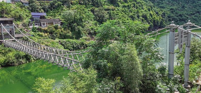 坐落泸溪县洗溪镇能滩村的能滩吊桥,于1938年5月建成通车,曾经是湘川公路上的重要节点,如今是重要的抗战交通工事遗址。 联合报全媒体记者 胡承鼎 摄