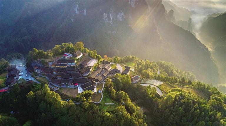 晨光中的花垣县双龙镇十八洞村景色宜人。十八洞村坐落湘川公路(今209国道)旁,如今是“精准扶贫首倡地”。 联合报全媒体记者 张谨 摄